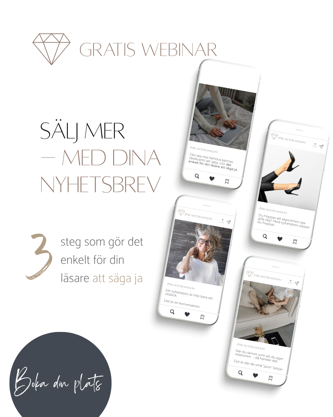 Under det här webinariumet visar jag hur du steg för steg skapar nyhetsbrev som bygger relation, väcker nyfikenhet och leder till fler ja.
